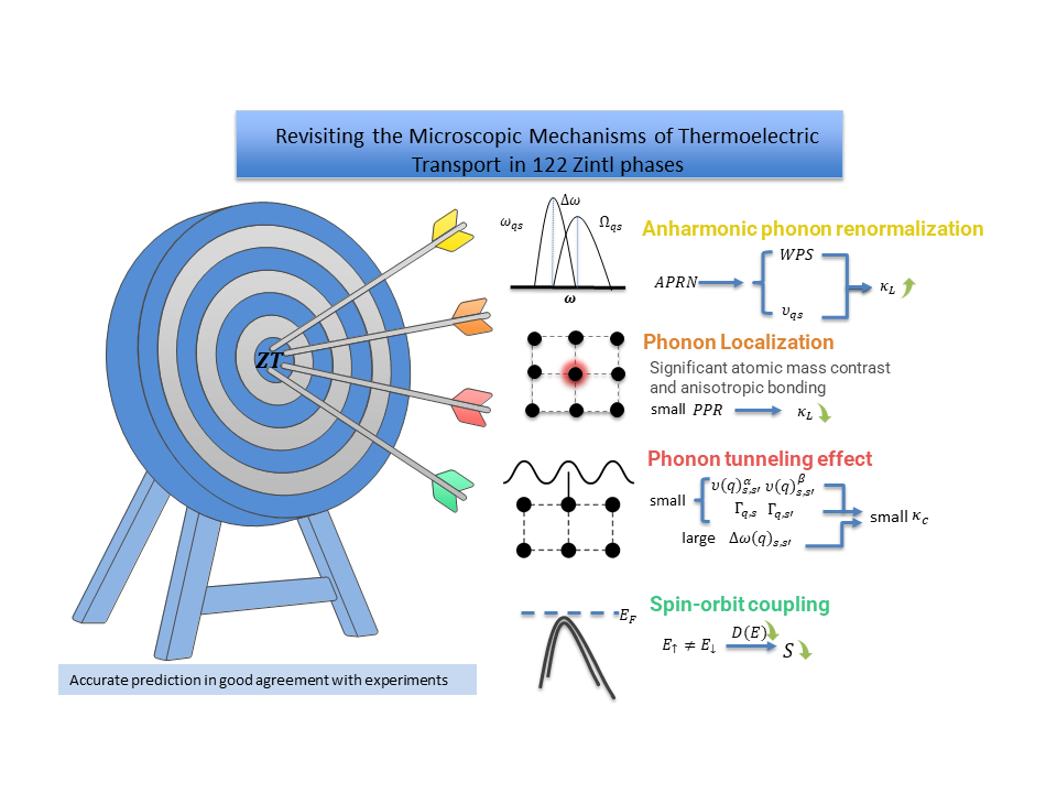 文章题目:Revisiting thermoelectric transport in 122 Zintl phases: Anharmonic phonon renormalization and phonon localization effects